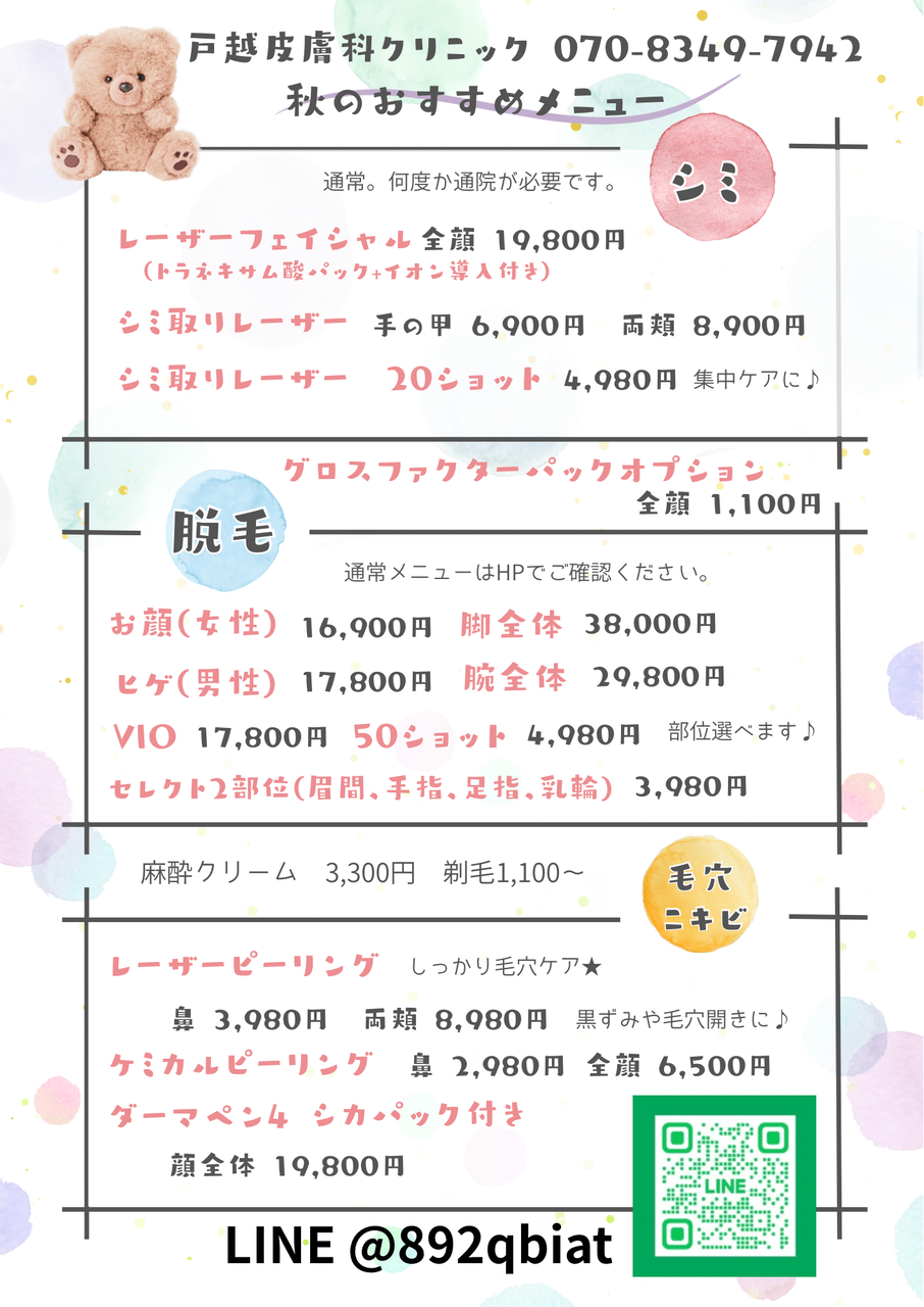 9月30日までの施術に限ります。初診料(再診料)込みになります。
